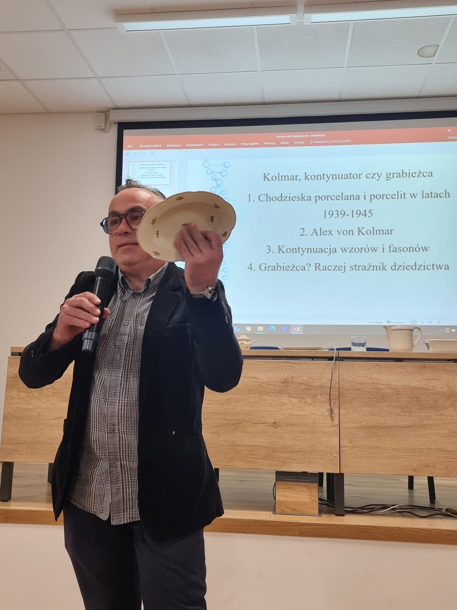 Na zajęciach Studium Wiedzy o Regionie, 29 maja odbył się wykład pt. „Kolmar, Kontynuator czy grabieżca. Chodzielska porcelana i porcelit w latach 1939 – 1945. Wykładowca, mgr Piotr Marzec – florysta – kolekcjoner porcelany z ogromną znajomością tematu, w bardzo ciekawy sposób i z pasją opowiedział Słuchaczom o porcelanie polskiej z tego okresu.