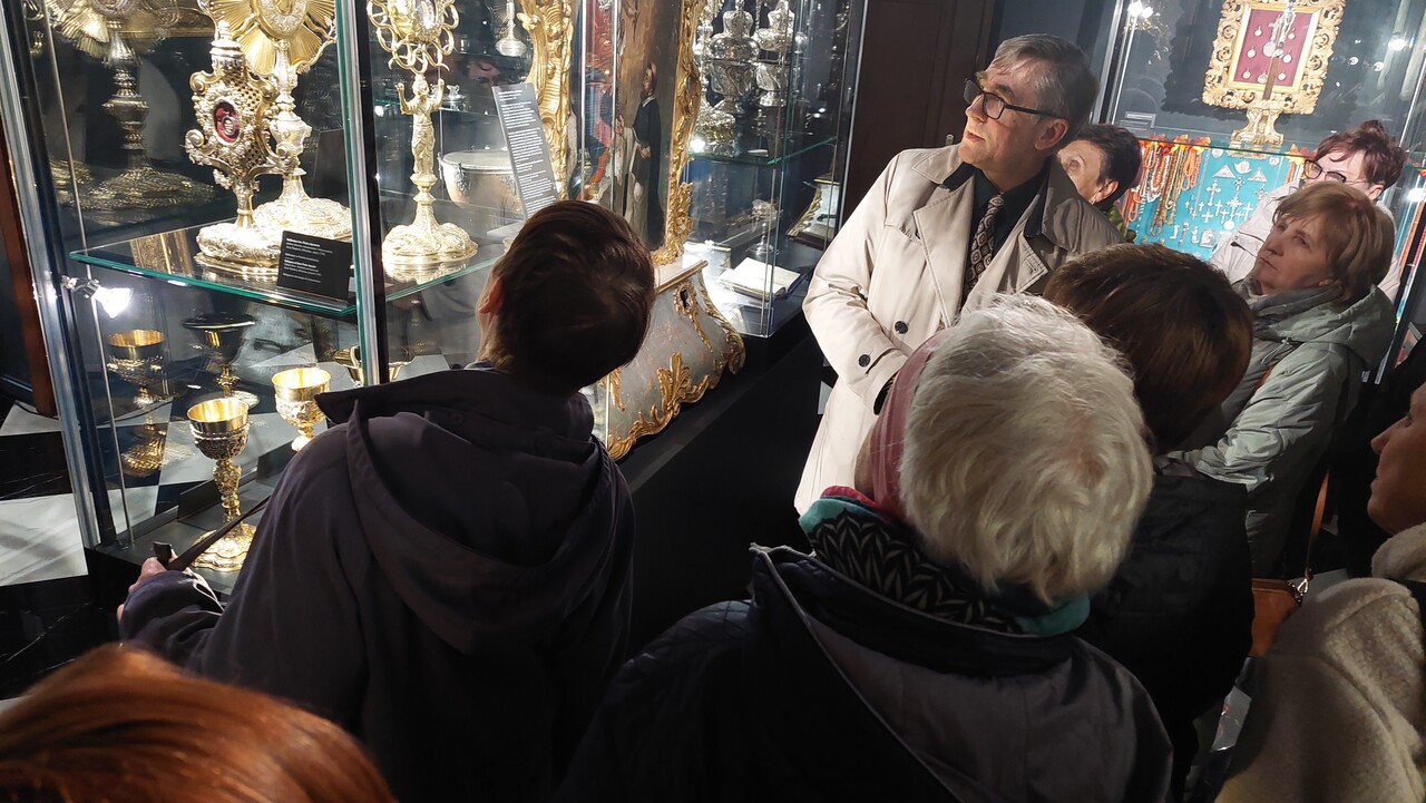 W ramach zajęć -Studium Wiedzy o Sztuce, 23 maja dr Piotr Kondraciuk zabrał Słuchaczy do Muzeum Wikarówka opowiadając o „Skarbach Sztuki Sakralnej” zgromadzonych w muzeum.
