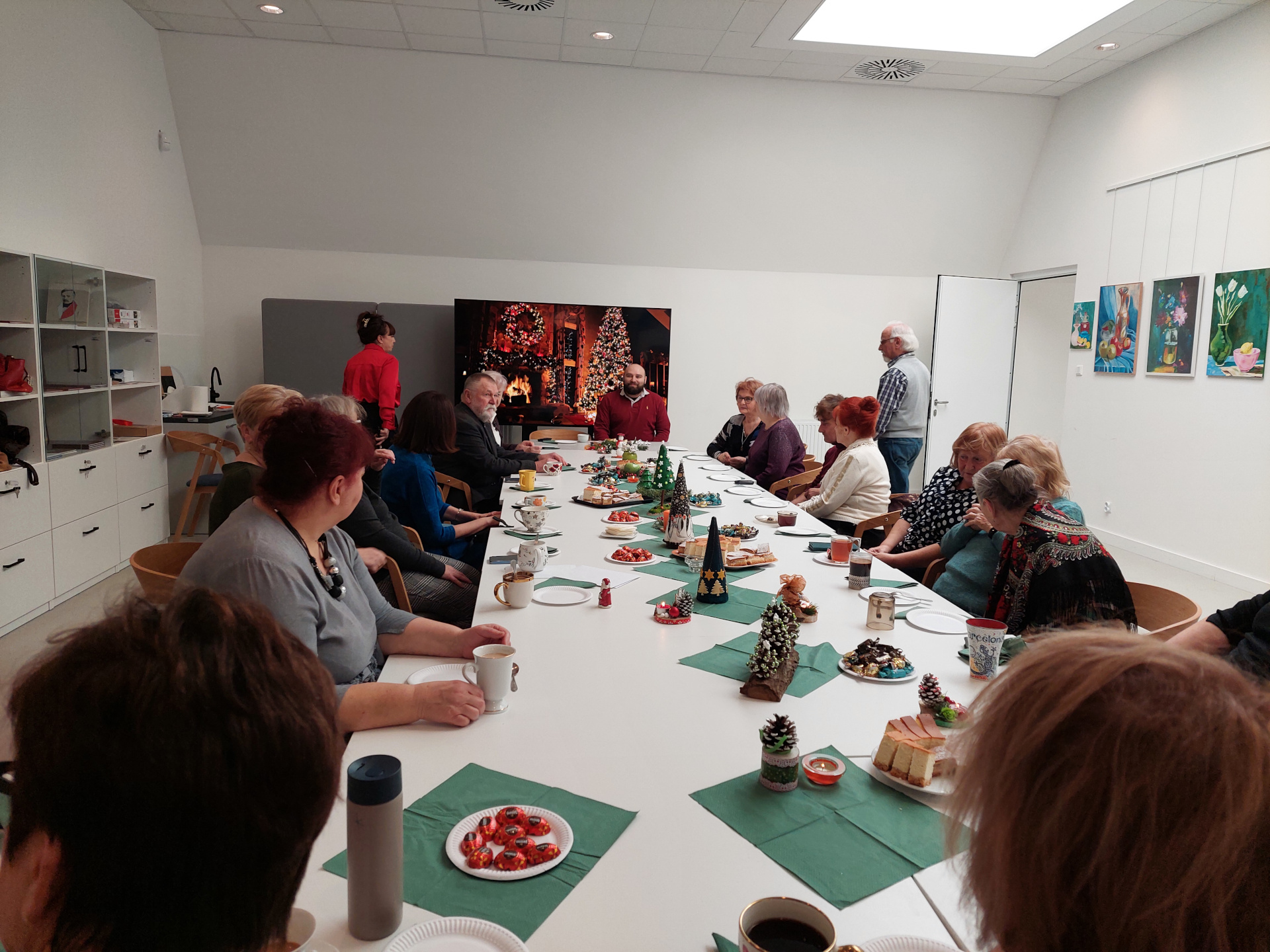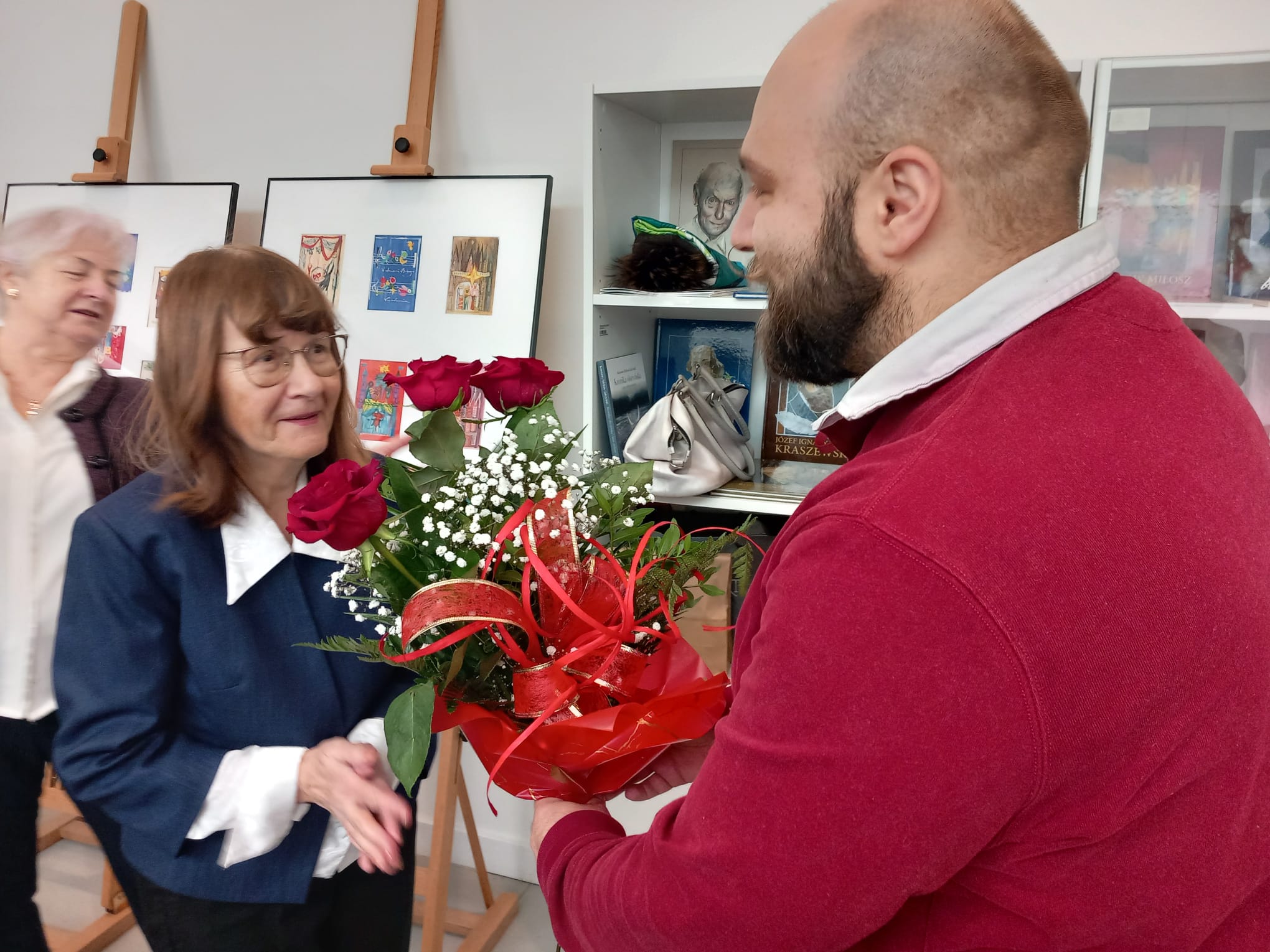 Koniec roku to czas podsumowań, podziękowań, życzeń. Tak też było na ostatnim w 2025 roku, spotkaniu w grupie malarskiej. Serdeczne podziękowania przekazano koleżance Janinie Jasińskiej za wieloletnią pracę w prowadzeniu grupy malarskiej, pani Katarzynie Bodes i Panu Łukaszowi Zawiślakowi za przekazywaną wiedzę i umiejętności. Na artystycznie udekorowanych stołach położono opłatek i słodkości które towarzyszyły serdecznym życzeniom na Święta i Nowy 2026 Rok. Podsumowaniem roku jest piękna galeria prac, która cieszy oko i serce, bo jej autorzy to właśnie grupa malarska. Szczególne podziękowania i najlepsze życzenia należą się Panu Dyrektorowi Jerzemu Tyburskiemu, dzięki któremu grupa funkcjonuje.
