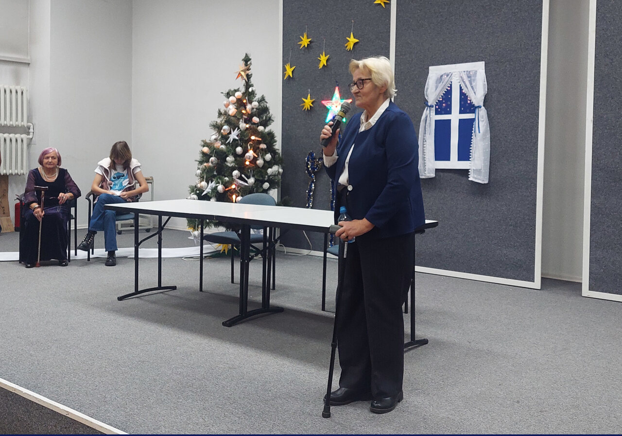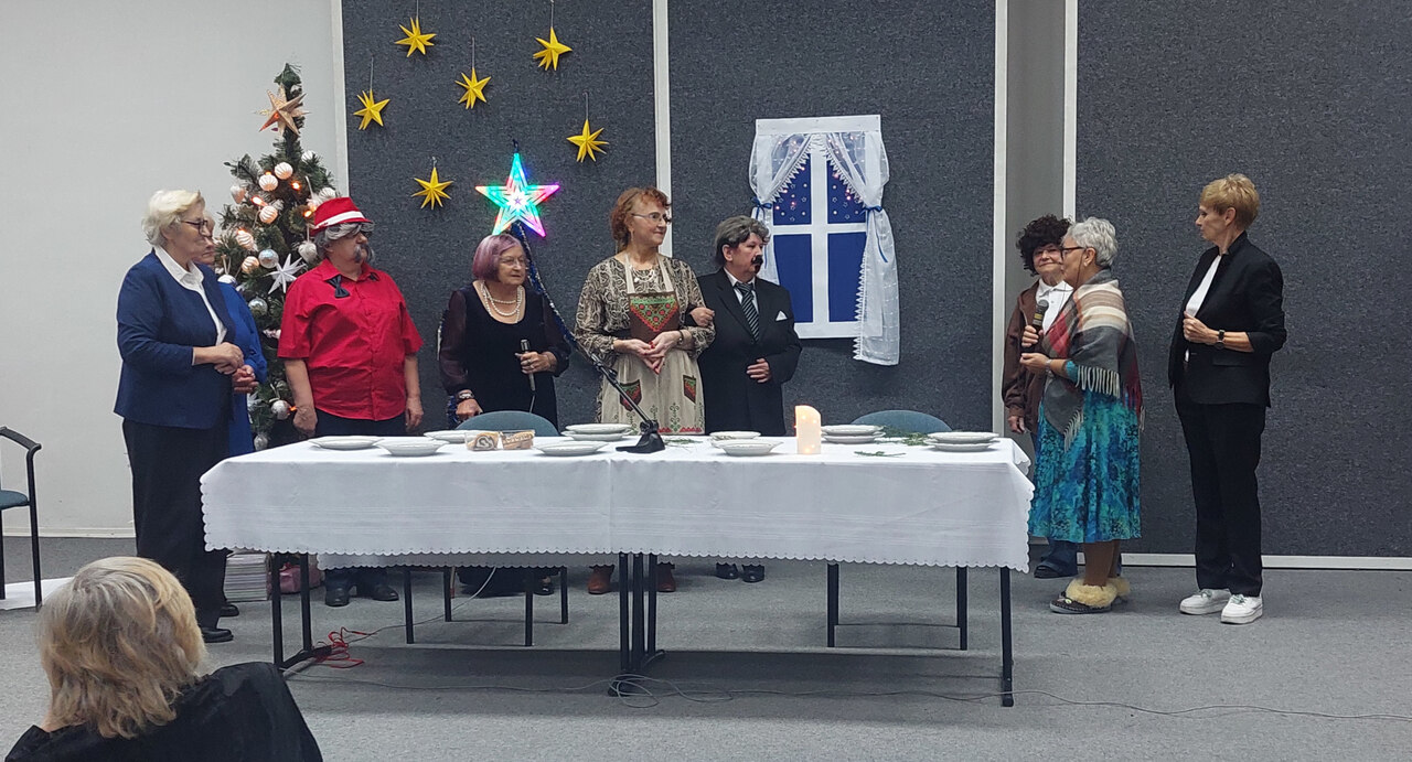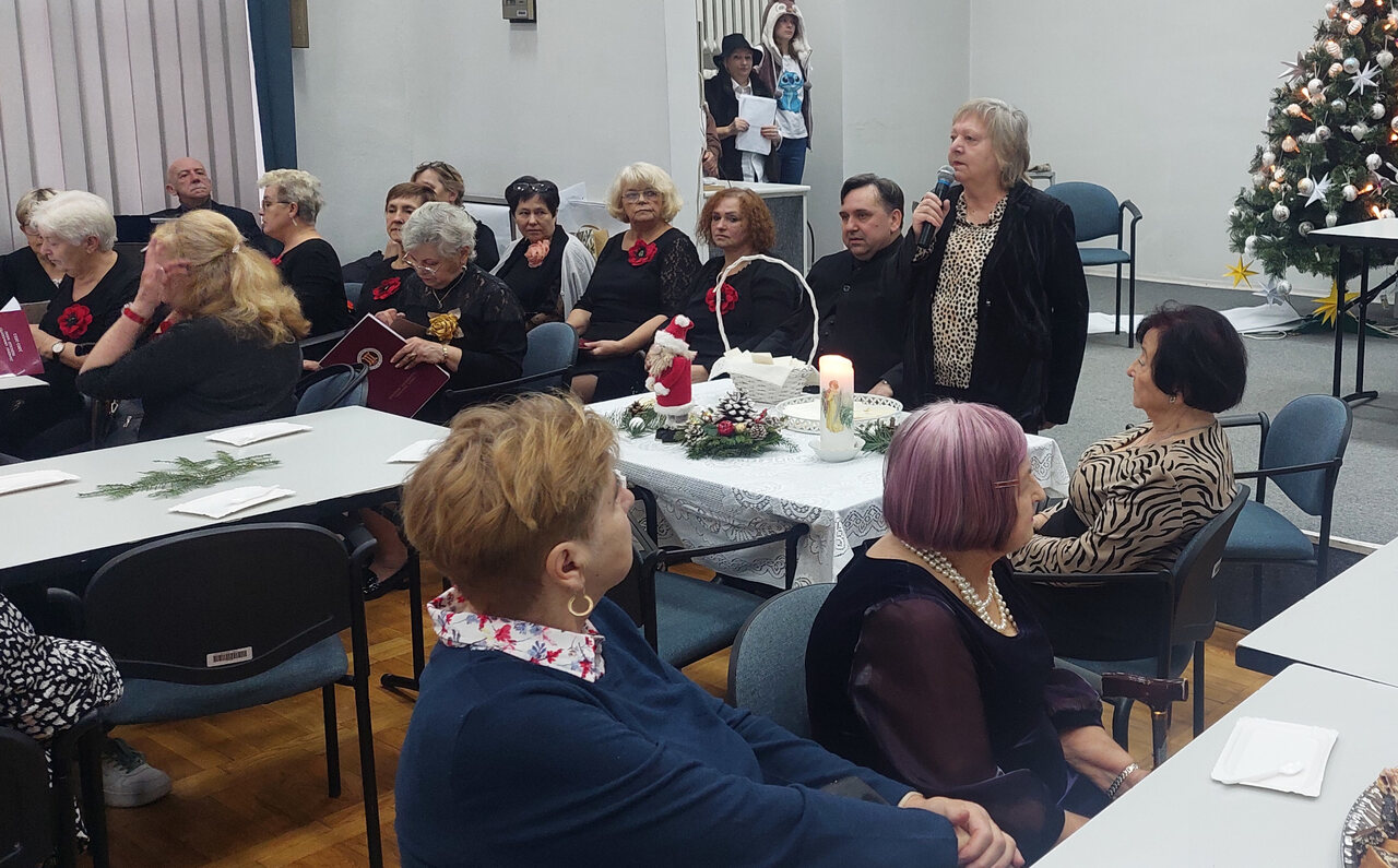 Zespół artystyczny “Literatka”, przygotował okolicznościowe przedstawienie w którym przypomniano zwyczaje świąteczne. Zespół wokalny Gaudeamus, przy akompaniamencie pana Tomasza Ziąbkowskiego, wykonał tradycyjne kolędy, a wszyscy słuchacze ochoczo dołączali do kolędowania. Wypowiedziano wiele ciepłych, serdecznych słów z najlepszymi życzeniami na Święta Bożego Narodzenia i Nowy 2025 Rok.