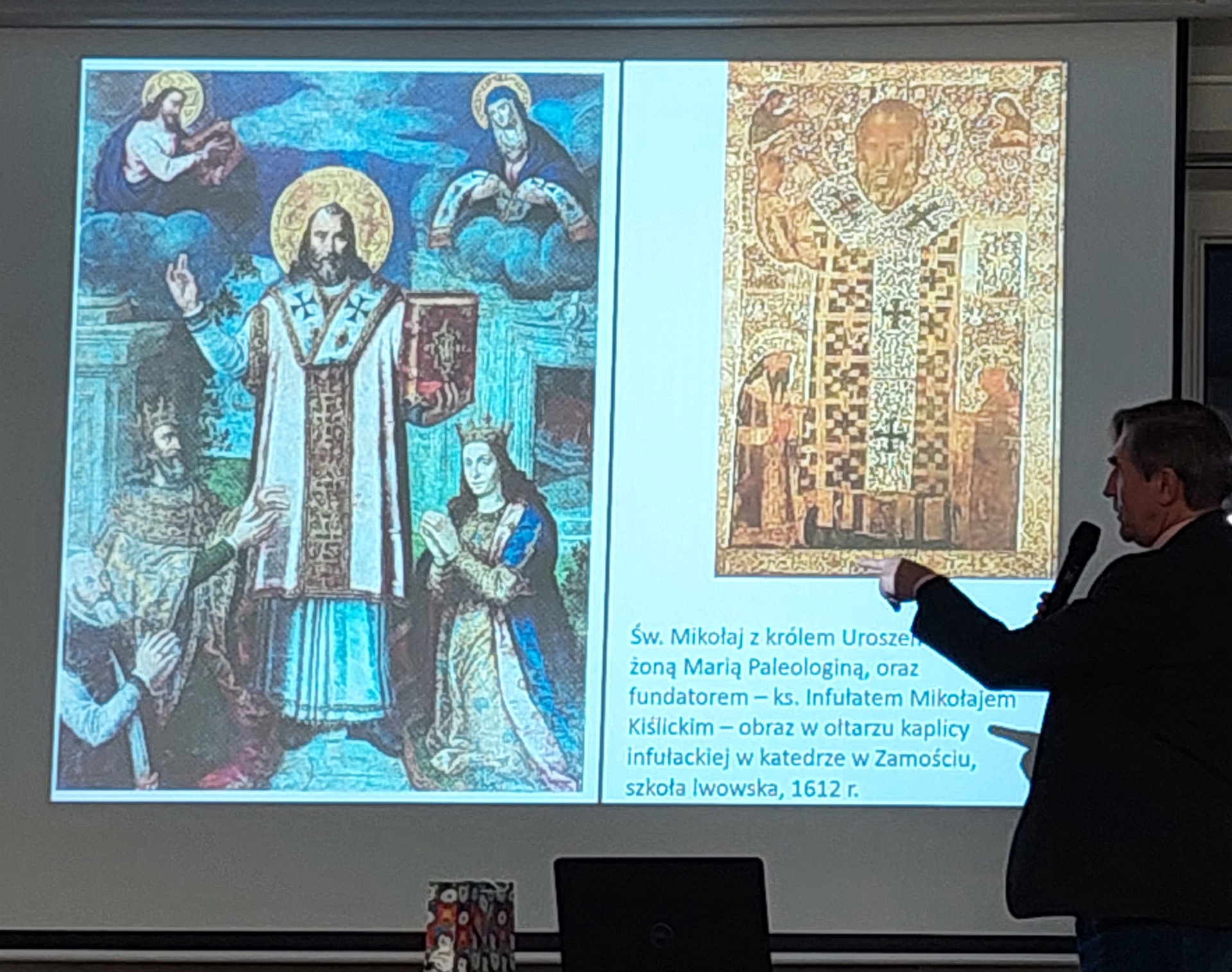 W piątkowe popołudnie 6 grudnia gdy Święty Mikołaj obdarowywał prezentami, słuchacze Uniwersytetu mieli przyjemność, w ramach Studium Wiedzy o Sztuce, wysłuchać bardzo ciekawej prelekcji „Święty Mikołaj” ikonografia i tradycje. Autorem i prelegentem był doskonale znany i ceniony pan dr Piotr Kondraciuk. Słuchacze mogli poznać historię biskupa Mikołaja, jego kult na przestrzeni wieków, oraz sposób przedstawiania jego postaci w obrazach i ikonach w różnych częściach świata.