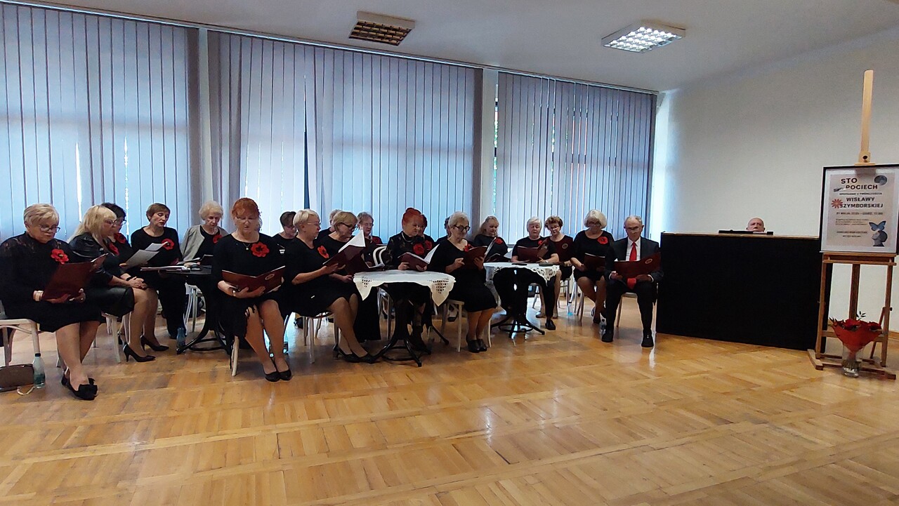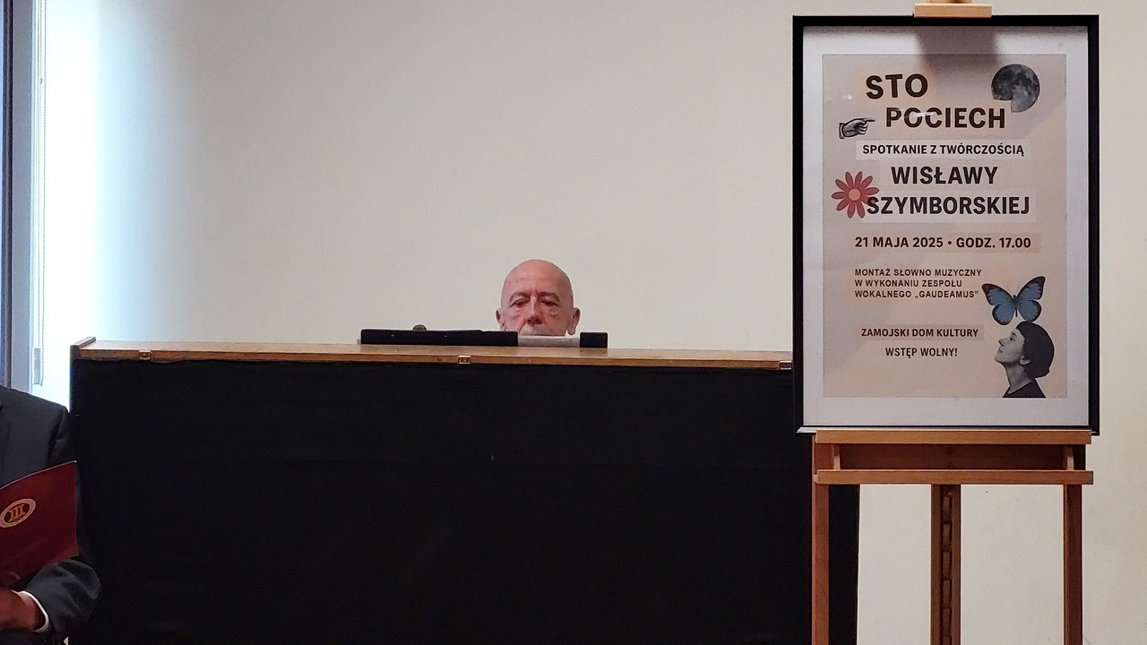 21 maja 2025 r. o godzinie 1700 w Zamojskim Domu Kultury, Zespół Wokalny Gaudeamus przedstawił bardzo interesujący montaż słowno-muzyczny, do słów Wisławy Szymborskiej. Oprawę muzyczną przygotował i zespołowi akompaniował pan Tomasz Ziąbkowski. Było to spotkanie przedwakacyjne zatem nie zabrakło podziękowań, miłych słów i kwiatów.