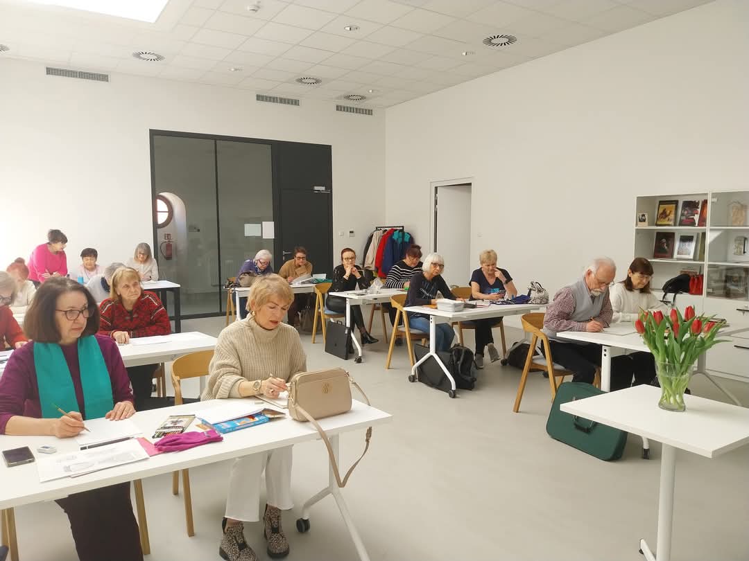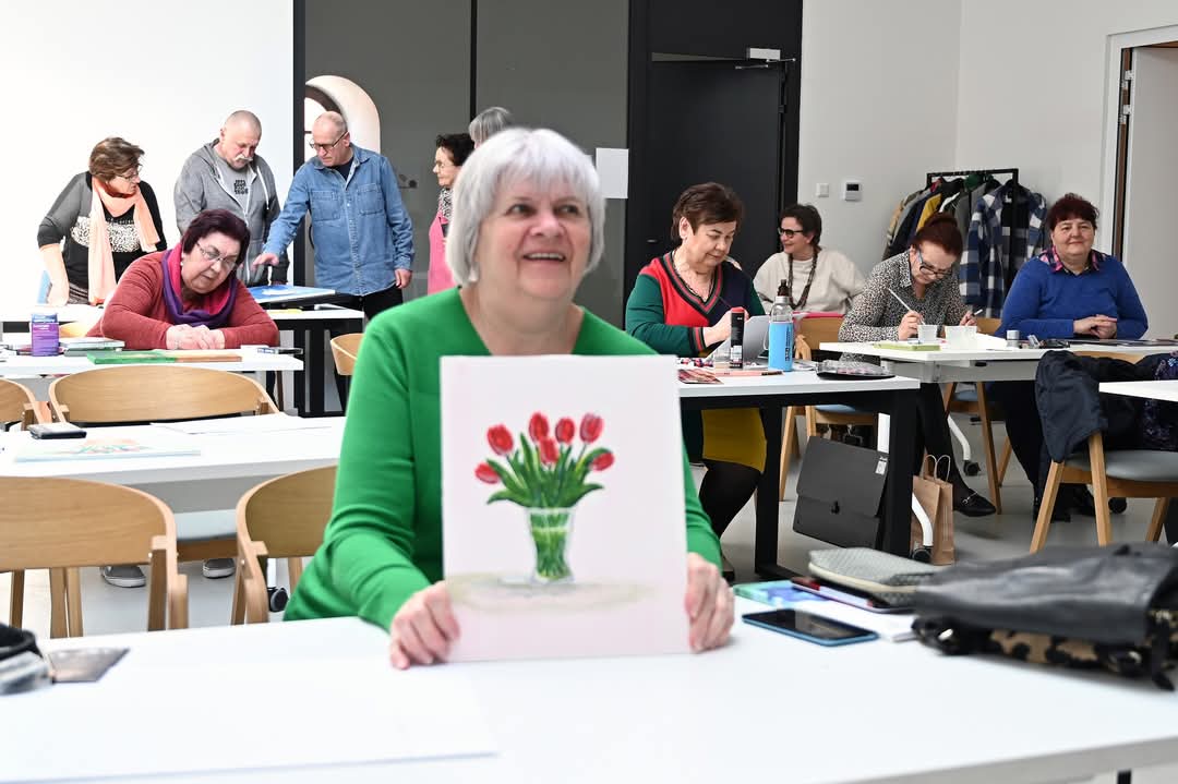 Taki był temat dzisiejszych zajęć z malarstwa, słuchacze odtwarzali kompozycję kwiatów. Temat bardzo przyjemny w oczekiwaniu na wiosnę.
